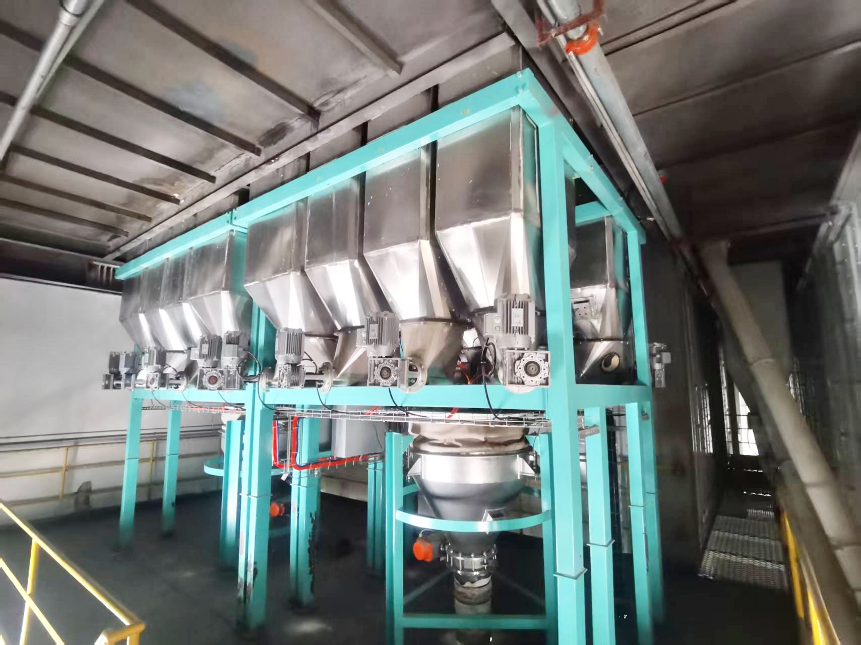 6、每個料箱頂部裝有袋式吸風管,裝料時避免粉塵飛揚,裝(zhuāng)料完畢,物料回落料箱內。